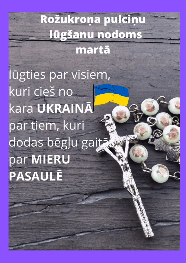 - trešdien, 9.martā Sv. Mise 9:00, Vissvētākā Sakramenta adorācija, Rožukronis un Dievmātes Litānija, iespēja saņemt Grēksūdzes sakramentu (līdz plkst.11:00),