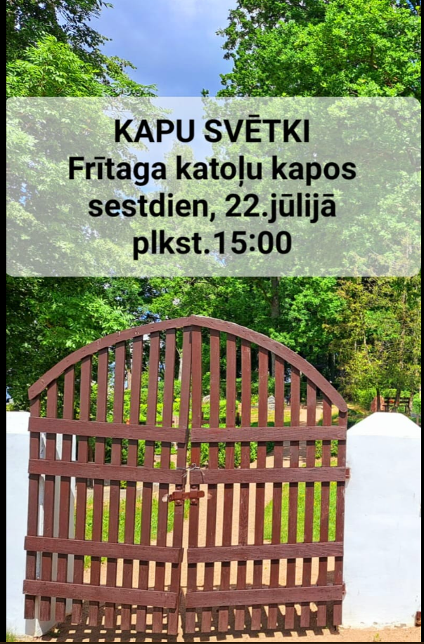 - sestdien, 22.jūlijā kapu svētki ar Sv. Misi Frītaga katoļu kapos plkst. 15:00
