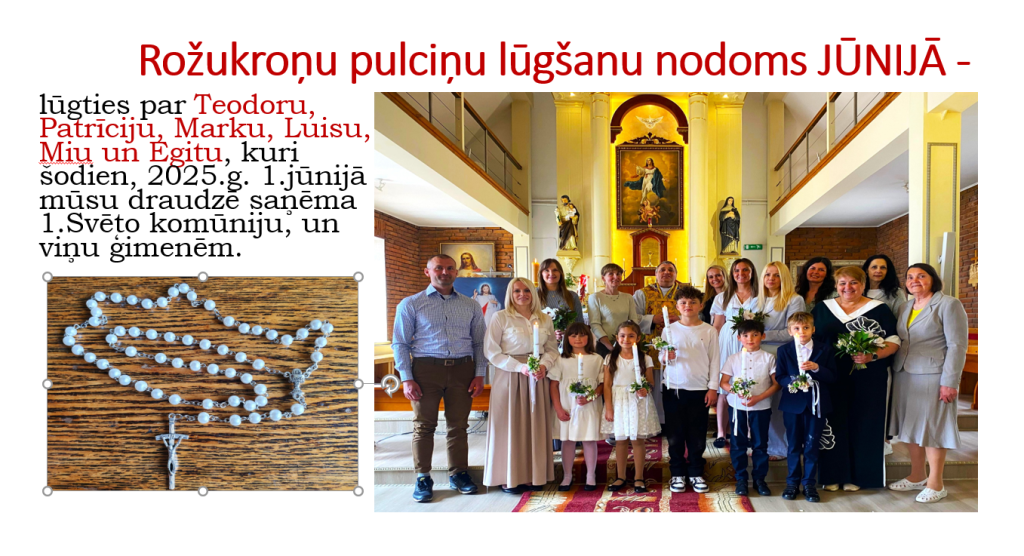 - piektdien, 6.jūnijā – Mēneša I piektdienā – Sv. Mise plkst. 9:00, Vissvētākā Sakramenta adorācija,