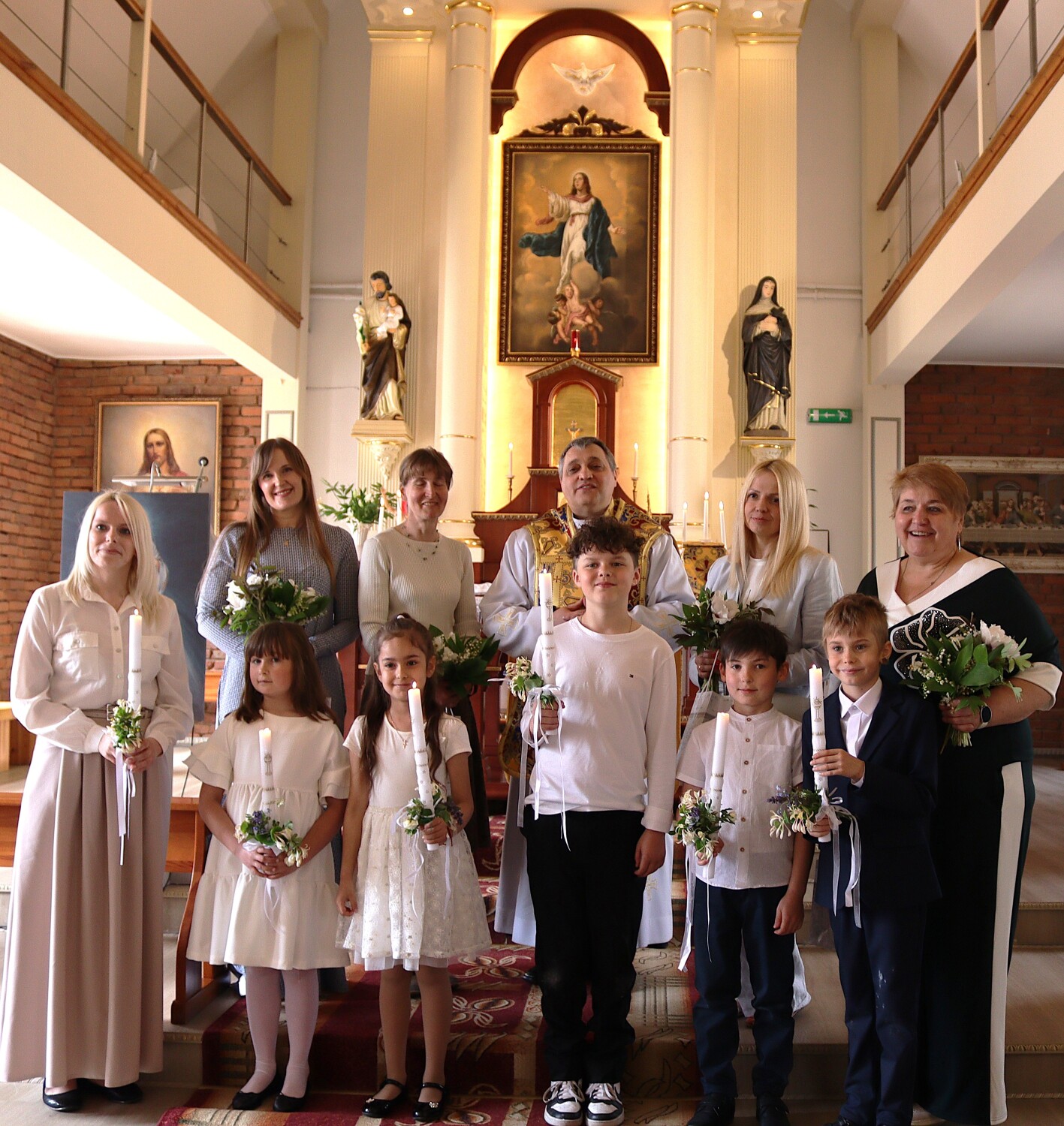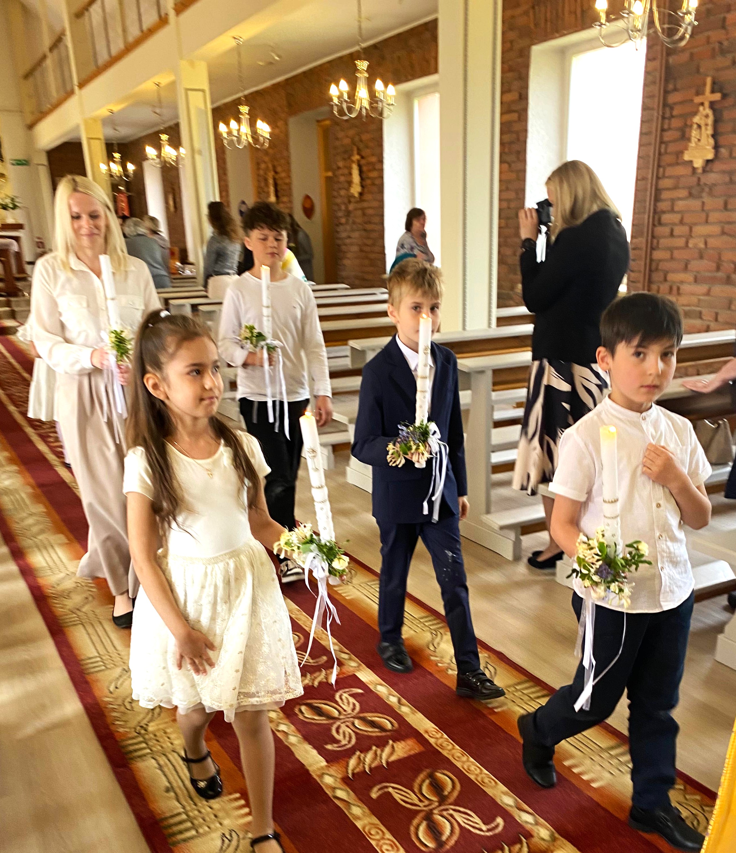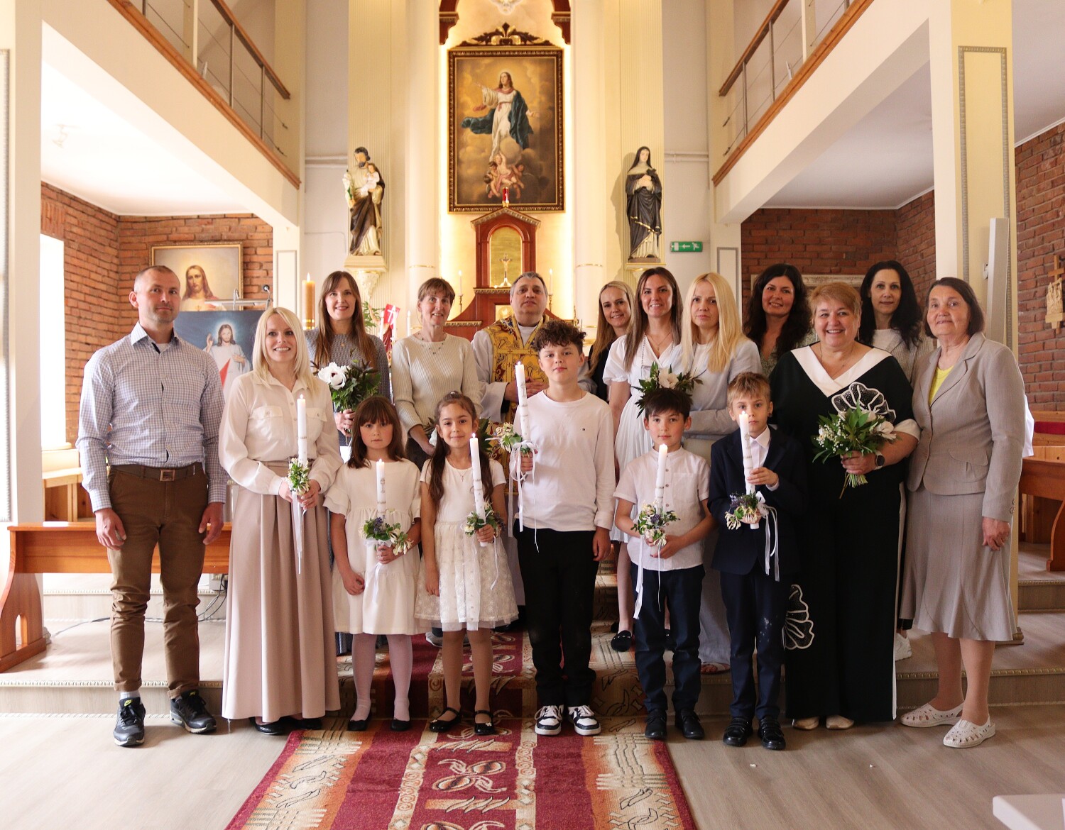 1.Svēto Komūniju saņēma Patrīcija, Teodors, Mia kopā ar mammu Egitu, Marks un Luiss.
