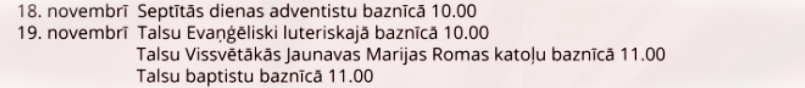 SVĒTKU DIEVKALPOJUMI TALSU BAZNĪCĀS